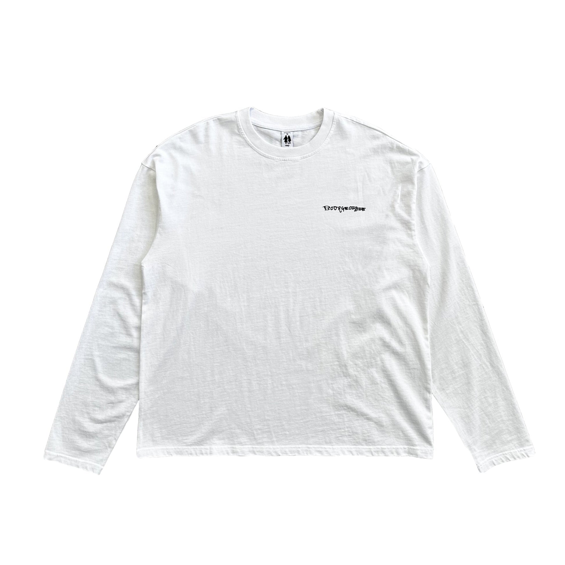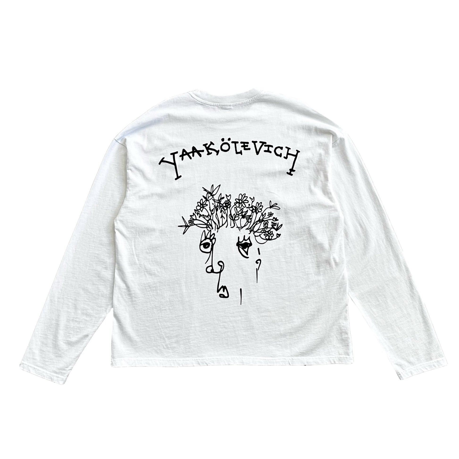 Yaakölevich x Bourgeoise FLOWERHEAD Long sleeve tee with FLOWERHEAD - 100% Cotton. illustration on the back with Yaakölevich x Bourgeoise logotype on the front.